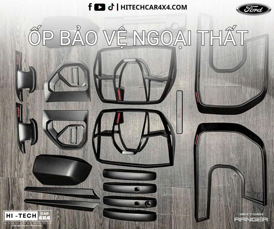 Ốp tay nắm cửa, hõm cửa, ốp đèn pha, đèn hậu, nắp xăng, tay mở cốp đen Ford Ranger