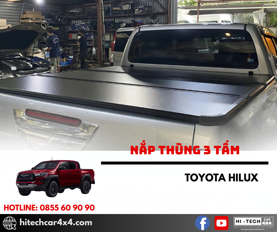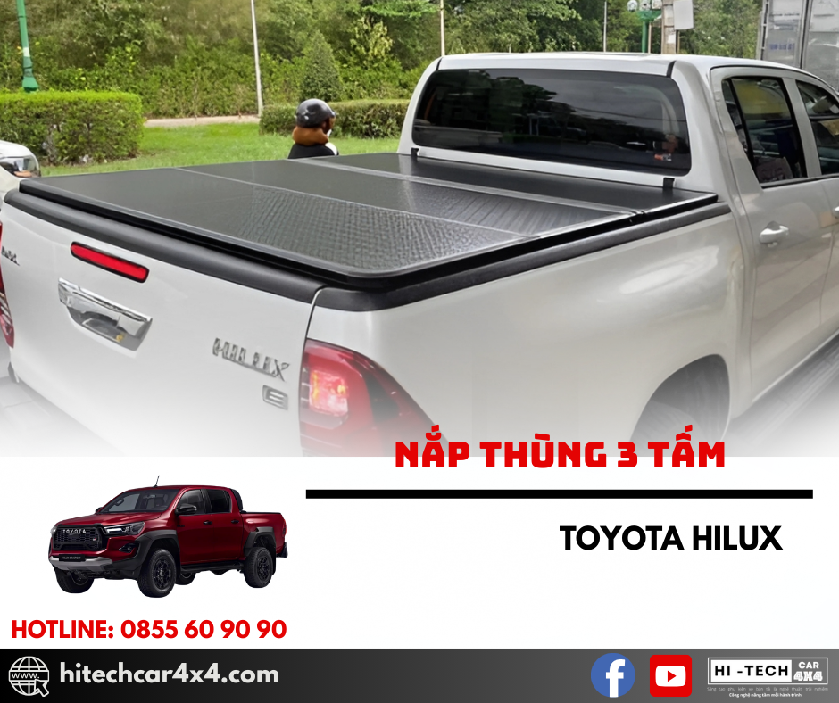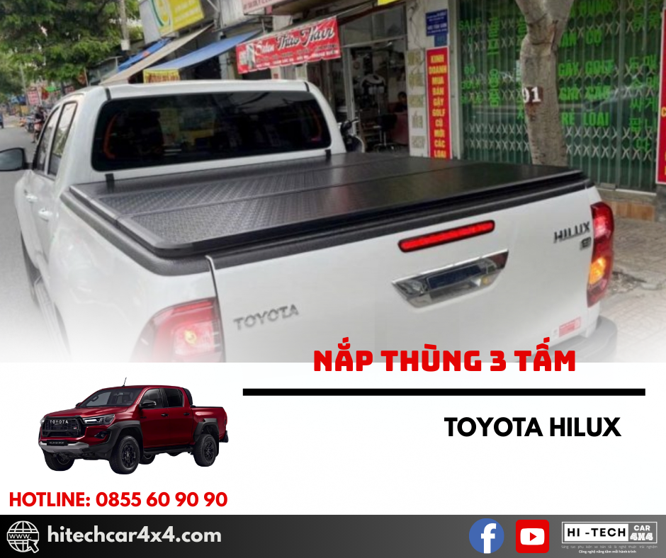- Nắp thùng 3 tấm Toyota Hilux giúp xe đậy những hàng hóa khi chở đồ, không làm chúng rơi ra, đảm bảo an toàn cho phương tiện đi ở phía sau.