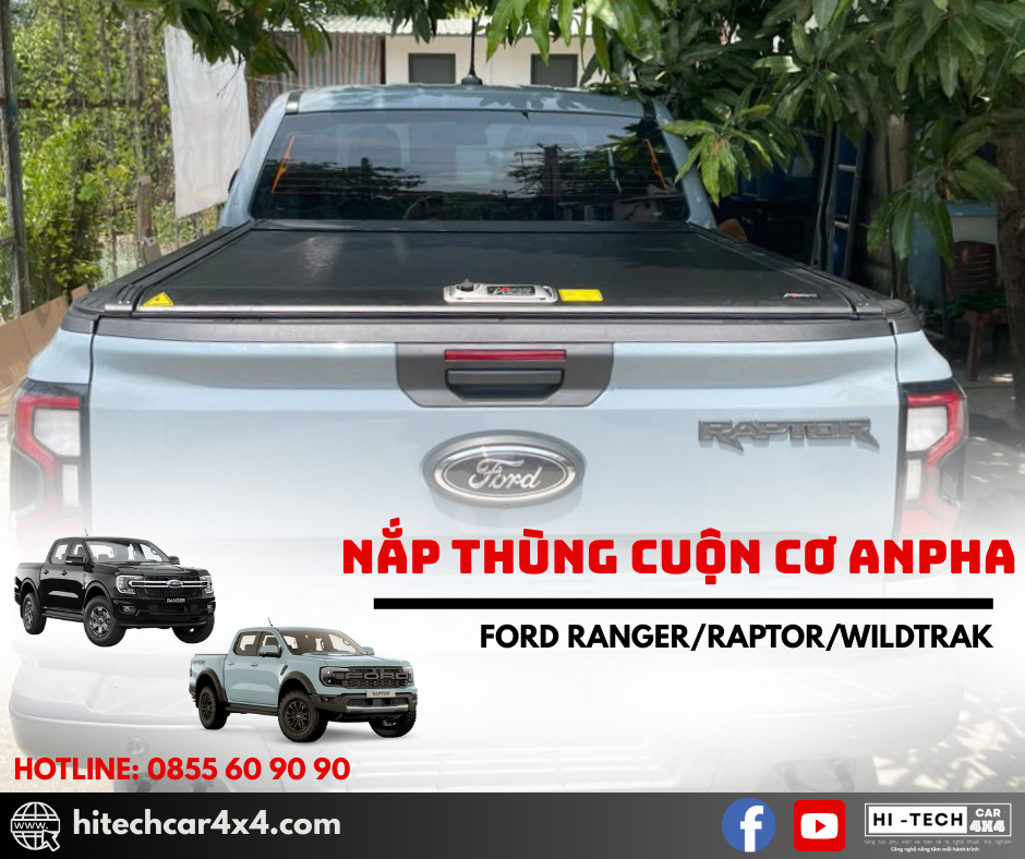 NẮP THÙNG CUỘN CƠ ANPHA FORD RANGER thiết kế cuộn nhẹ nhàng, không kêu khi đi qua địa hình xấu, thiết kế nhẹ từ nhôm sơn tĩnh điện, chống nước và bảo vệ hàng hóa tối ưu với hệ thống khóa an toàn và kết nối cao su chắc chắn.