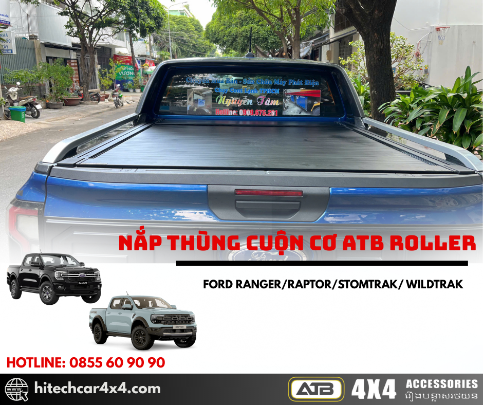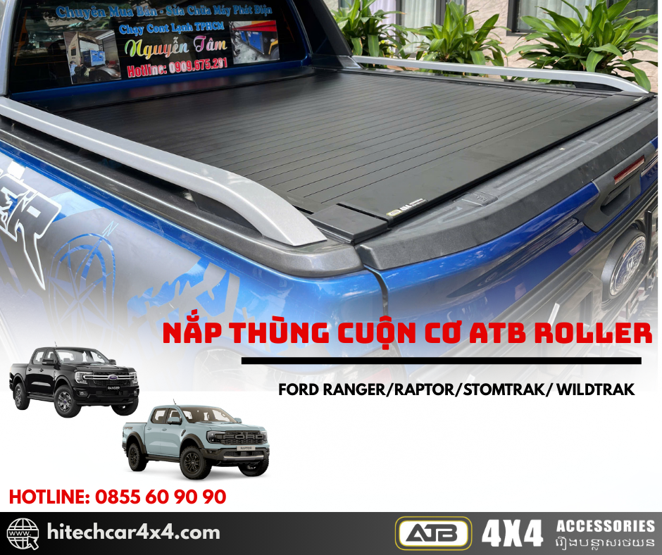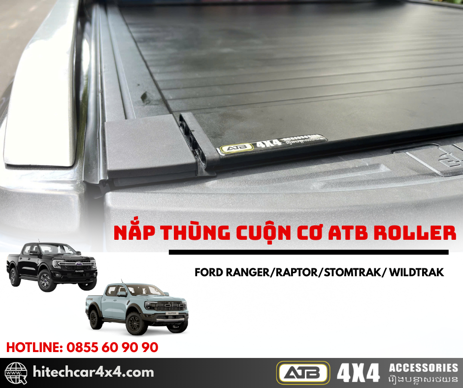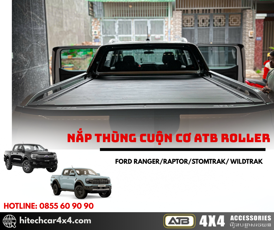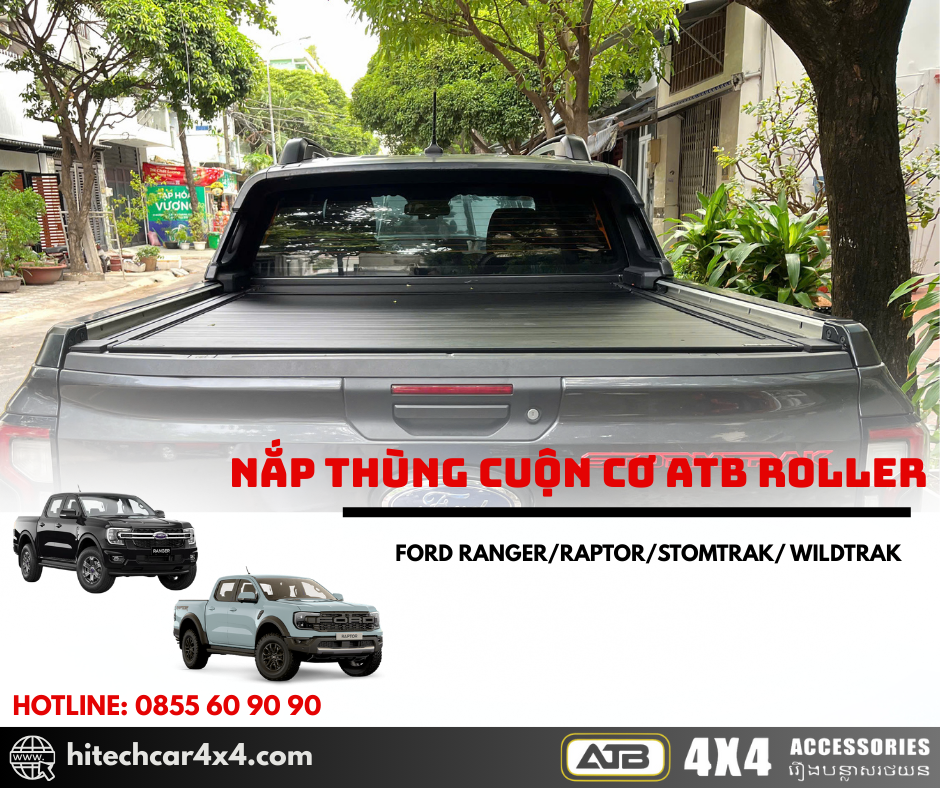 NẮP THÙNG CUỘN CƠ ATB ROLLER FORD RANGER 2022-2025 thiết kế cuộn nhẹ nhàng, không kêu khi đi qua địa hình xấu, thiết kế nhẹ từ nhôm sơn tĩnh điện, chống nước và bảo vệ hàng hóa tối ưu với hệ thống khóa an toàn và kết nối cao su chắc chắn.