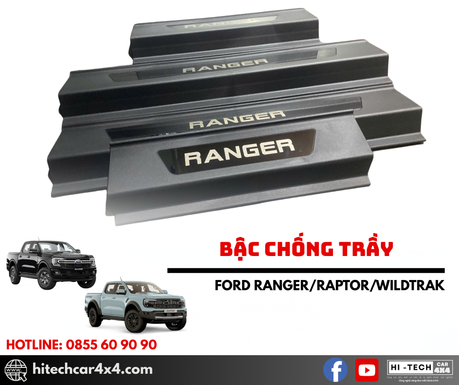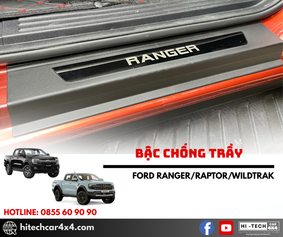 - Thiết kế chuẩn form xe Ford Ranger, ôm khít bậc cửa, giúp bảo vệ bậc lên xuống khỏi trầy xước và hao mòn.