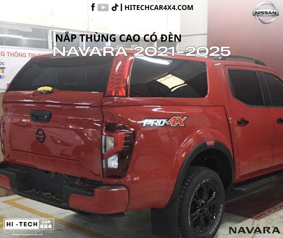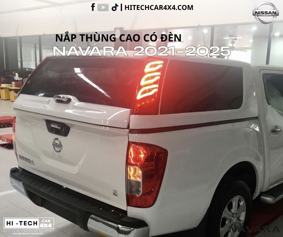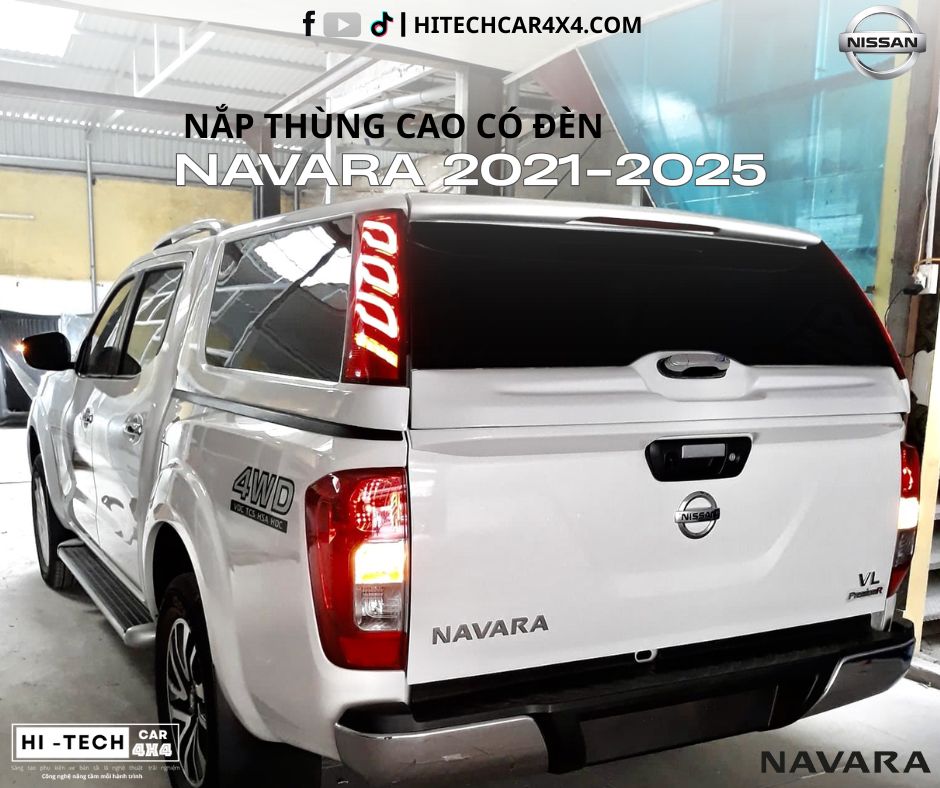 Nắp Thùng Cao Dành Cho Xe Bán Tải Nissan Navara 2021-2025 Nắp Thùng Có Đèn Phanh, Chống Nước, Bảo Vệ Hàng Hóa