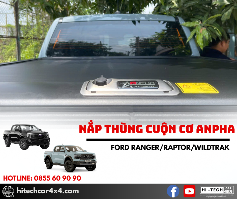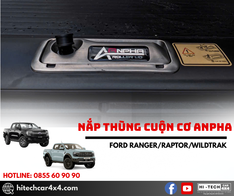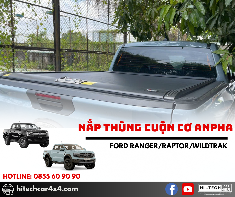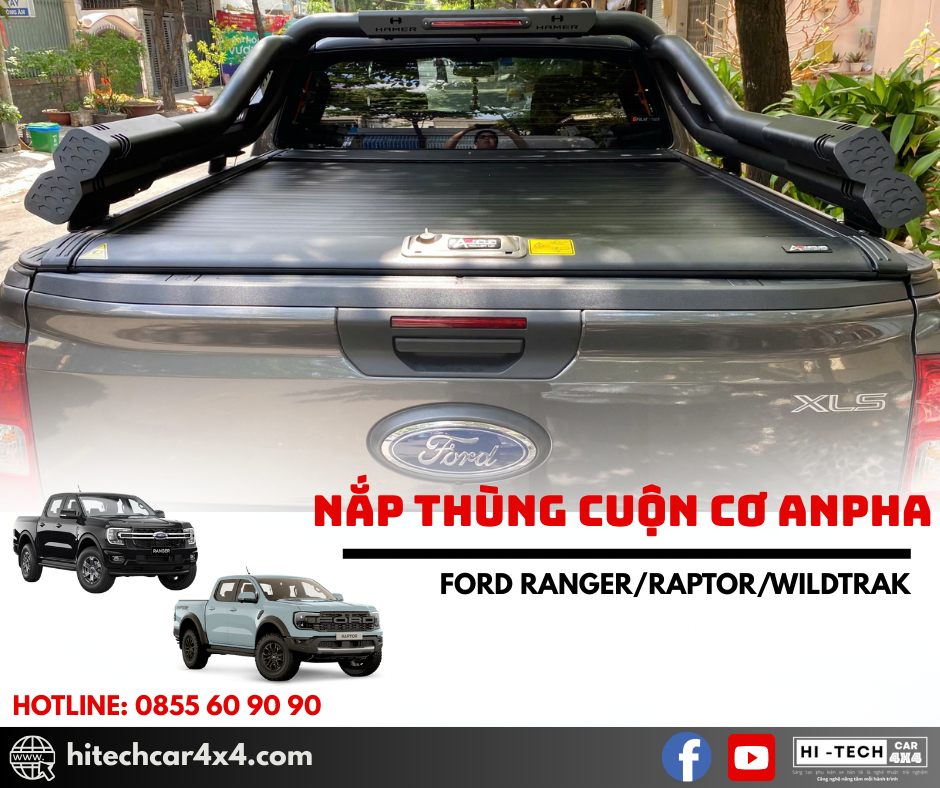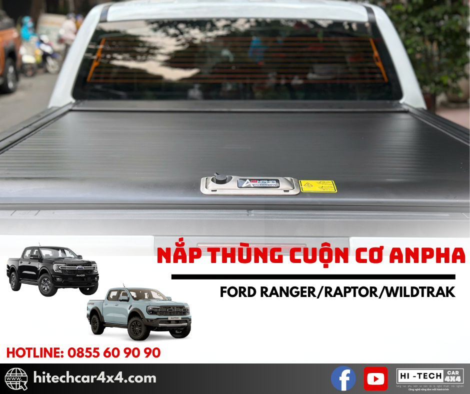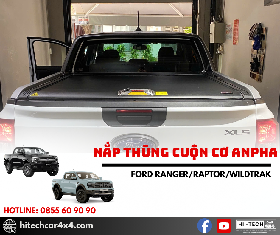 NẮP THÙNG CUỘN CƠ ANPHA FORD RANGER thiết kế cuộn nhẹ nhàng, không kêu khi đi qua địa hình xấu, thiết kế nhẹ từ nhôm sơn tĩnh điện, chống nước và bảo vệ hàng hóa tối ưu với hệ thống khóa an toàn và kết nối cao su chắc chắn.