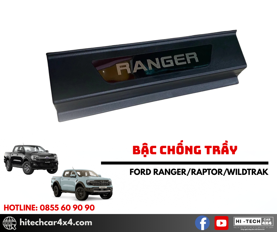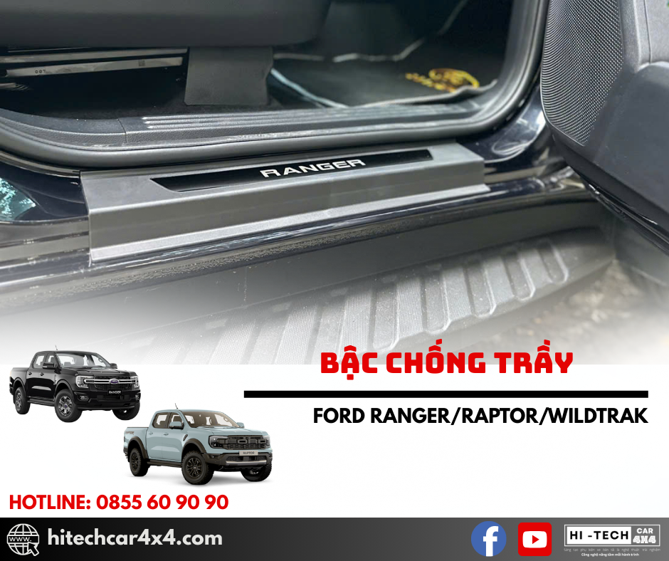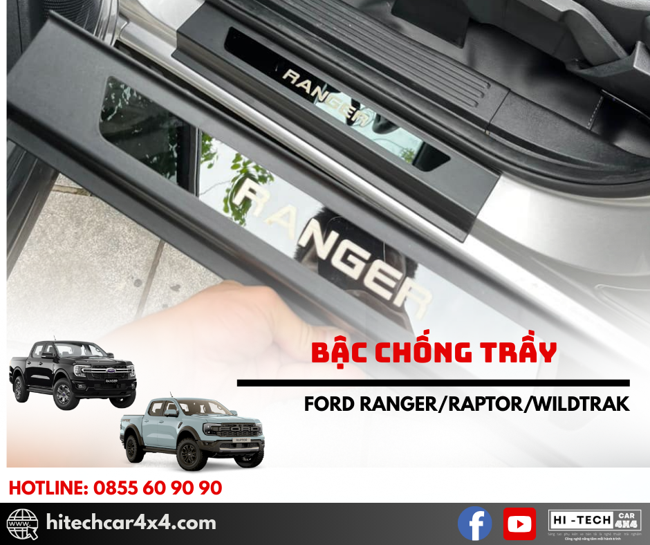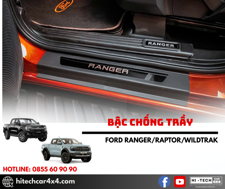 - Thiết kế chuẩn form xe Ford Ranger, ôm khít bậc cửa, giúp bảo vệ bậc lên xuống khỏi trầy xước và hao mòn.