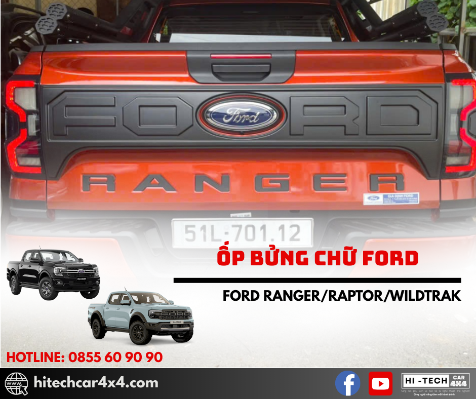 Ốp bững sau chữ Ford cho Ford Ranger là phụ kiện hoàn hảo để nâng cấp diện mạo cho chiếc Ford Ranger Với thiết kế nổi bật chữ “FORD”, sản phẩm mang tính thẩm mỹ cao và bảo vệ bề mặt bửng sau khỏi trầy xước và bụi bẩn. Chất liệu nhựa ABS bền bỉ, lắp đặt dễ dàng mà không cần khoan cắt, giúp giữ cho xe luôn mới mẻ và phong cách. Hãy đến ngay với Chuyên Phụ Kiện Xe Bán Tải để trải nghiệm sản phẩm chất lượng, được bảo hành và hỗ trợ tận tình!